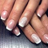 Beautifully looks the use of patterns in the technique of French manicure, in which one or two accent nails are decorated, instead of the traditional smile, with a simple ornament or even the usual row of tiny dots. Used today as the allocation of holes in different patterns.