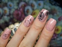 - You can not add abundantly to the design with a pattern of glitter and shimmer. The premium quality of manicure suffers from this, it looks simpler and tasteless.