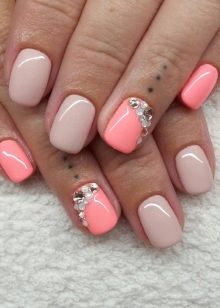 One of the most harmonious combinations is the combination of beige with brown. This duet allows you to improve the design, even if you use a simple pattern to accent nails. It looks beautiful beige with nude, light and dark gray tones. No less harmonious combination of beige with coral color.