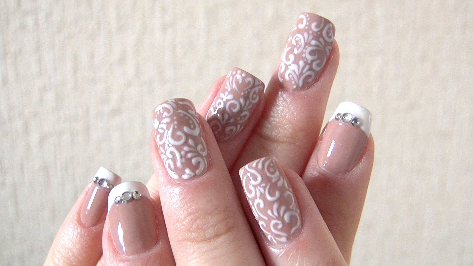 To learn how to make a gentle beige manicure with a ribbon, see the next video.