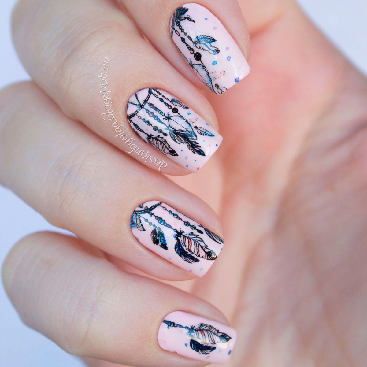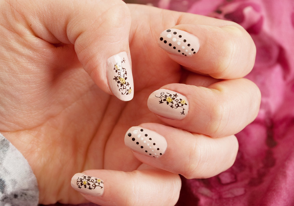 Do not use exactly the same image on each accent finger. Change the picture a little. Let it be one theme, but different parts of the pattern (for example, a flower on one nail and a petal on another).