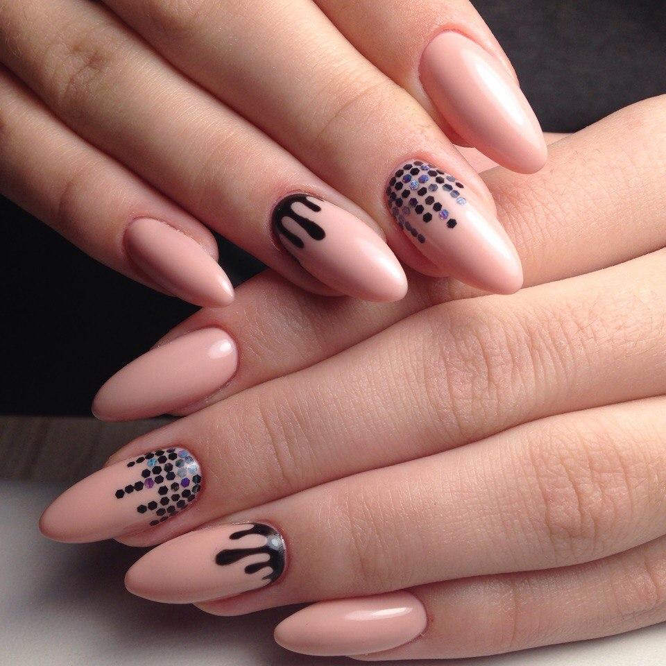 Despite the fact that the beige color is considered conditionally universal, it is legible in color combinations. Each contrast that is added to the design brings its own emotional coloring to the design. For example, black makes manicure evening, red and orange makes it sharper, white, silver and gold adds a premium.
