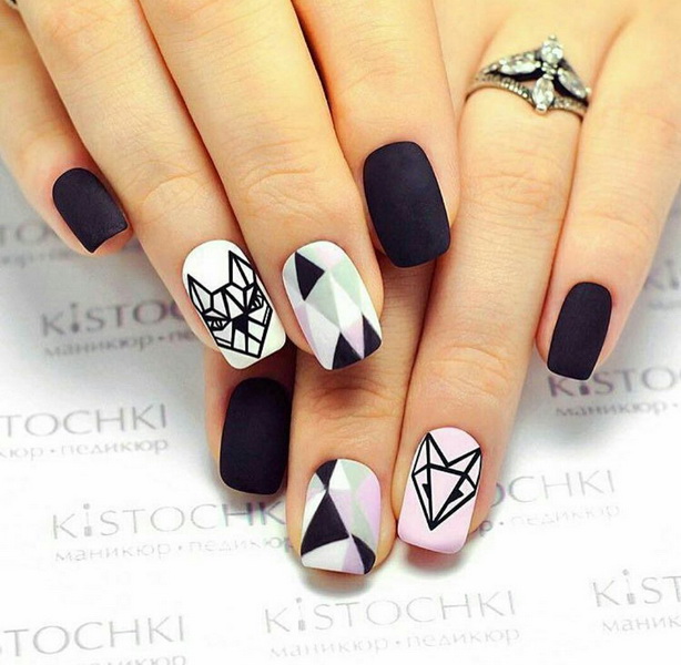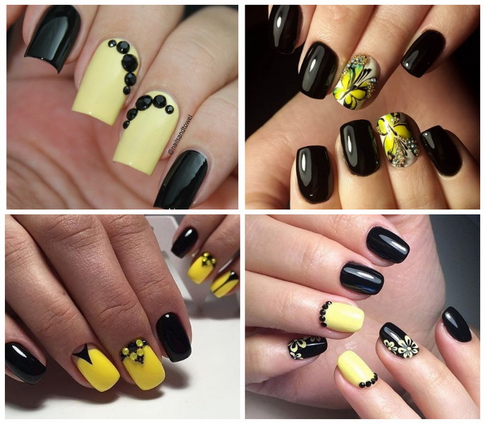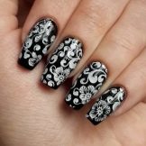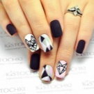 The universality of black color suggests its use as a basic component of the design. The use of various techniques and methods of coloring and decorating nails will provide interesting images.