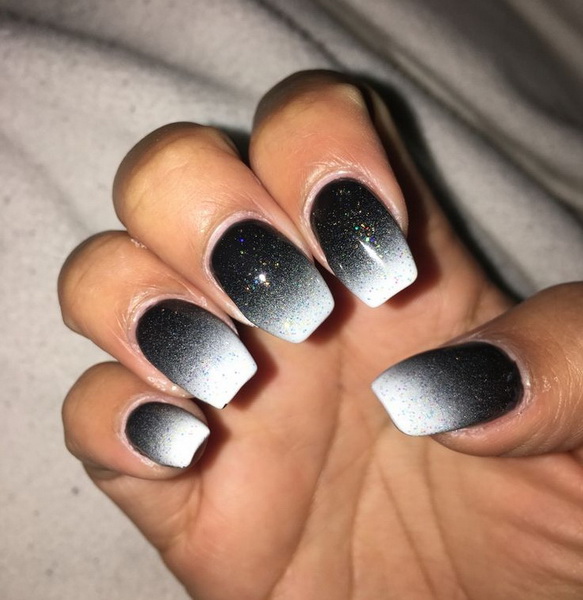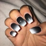 Ombre is a special gradient nail coloring technique. Thanks to this method, the masters, creating smooth transitions between shades, get a unique design. With a black base, manicure acquires saturation and depth.Moreover, ombre can be used not only for color shades, but also for glitters or sparkles, and it also looks spectacular in combination with other techniques. For example, an ombre with rubbing. Since the rubbing material lends itself to a good shading, even beginner masters will be able to create a unique brilliant manicure without much hassle.