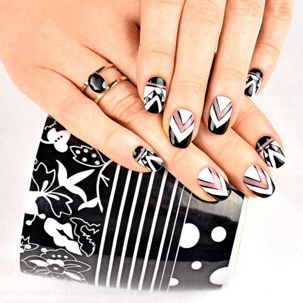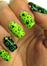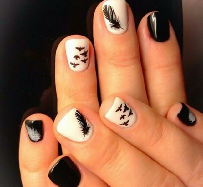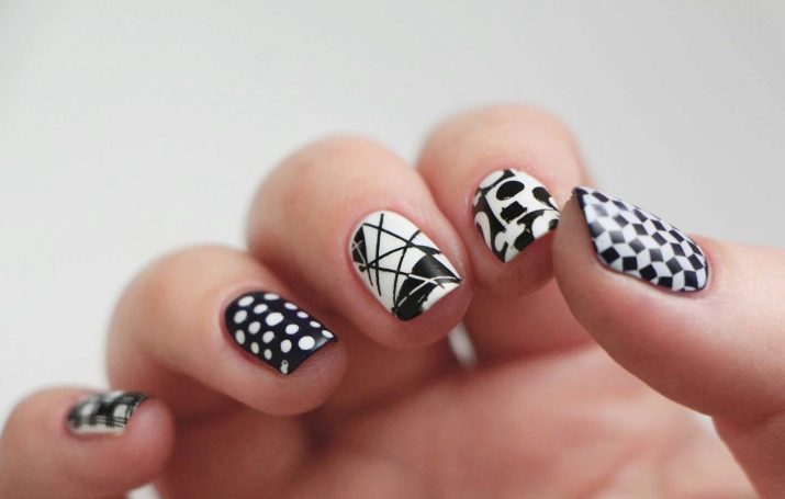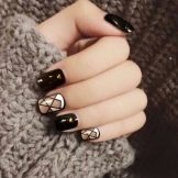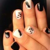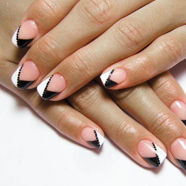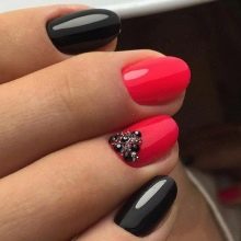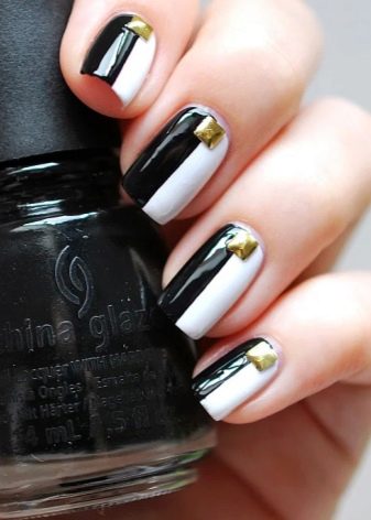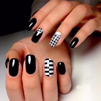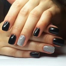 As stated above, black is the base color and is combined with any shades. More recently, it was popular to emphasize in manicure 1-2 nails on each hand. However, nowadays modern trends give rise to new ideas and trends. The combination of black and white - a classic version of manicure.It is universal, which allows it to be used in an everyday business image, as well as with the addition of decorative elements to turn it into a festive occasion for special occasions.