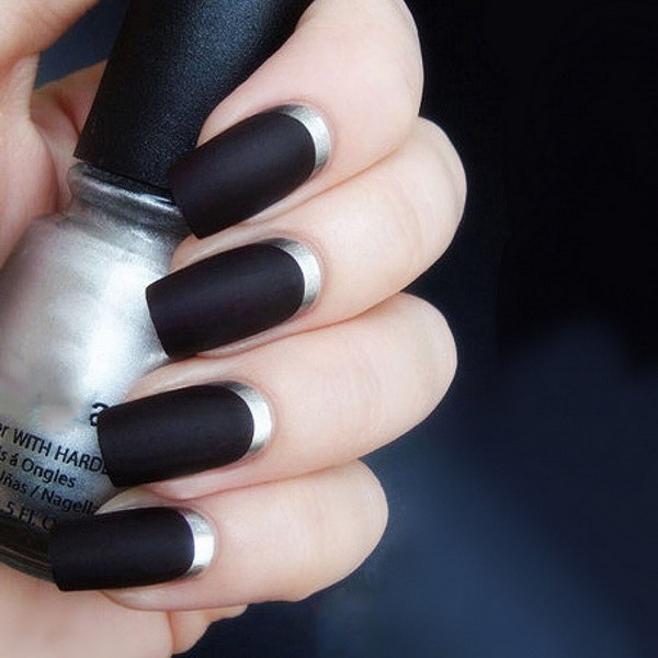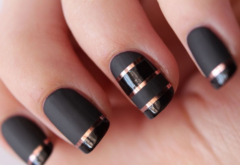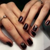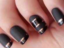 The most classic options are made in business style and are suitable for the office. From the stylish trends of recent years should be highlighted matte finish. It in itself looks spectacular and is very popular. If you diversify its variations with glossy lacquer and decorate the joints with black rhinestones, the result will be a discreet, concise, but very stylish manicure.