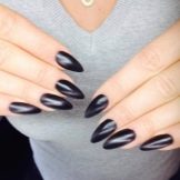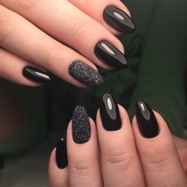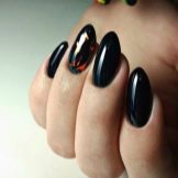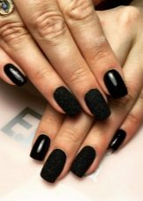 Modern nail design pays special attention to black manicure. Since this color is universal, it is appropriate "even to a feast, even to the world." For him there are no established cliches, it can be combined with any shades and textures. The only recommendation is advice on the length of the nail: it is better if it is short or medium. It is not advisable to apply black lacquer on square nails, it looks most advantageous if they are round.
