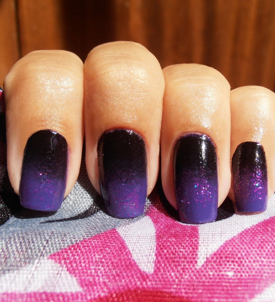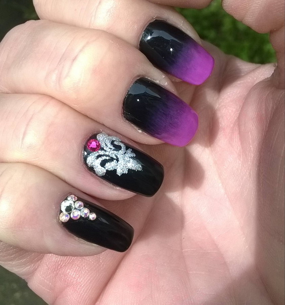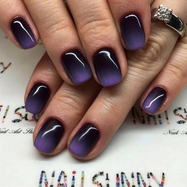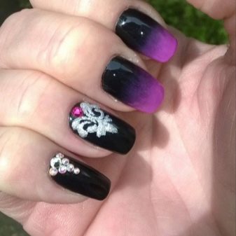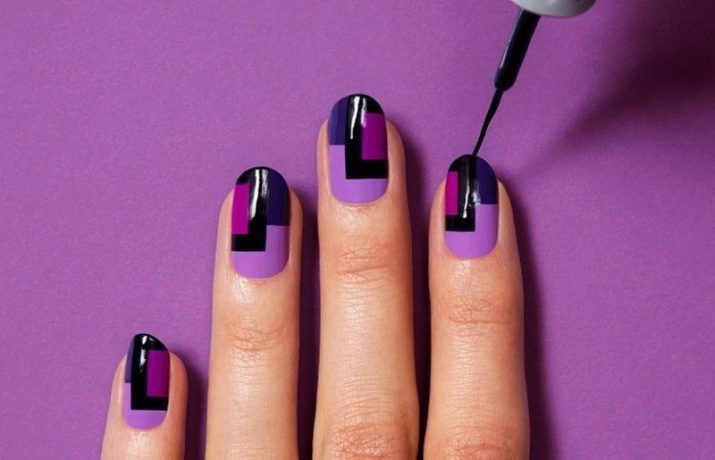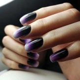 In general, any pastel colors look impressive with black lacquer coating. And if they serve as the main background, and the patterns are made in dark color, then these are more gentle variations. In the opposite case, a contrast manicure is obtained. Manicure with a pronounced purple polish was always at the peak of popularity. Its deep shades and magical tints attract the eye. Adjacent colors in the palette are lilac, mauve and aubergine. With the whole palette, ombra with black looks surprisingly organic and rich.