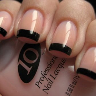 Another office model is the classic French nail design. In this case, the white strip on the upper edge of the nail is replaced by black. For lovers of diversity, stylists offer a two-tone black jacket with a matte and glossy finish. Also in the business style make up the nails of the moon design. There are also many variations. Either the nail plate is coated with black lacquer, and the holes are left unpainted, or vice versa. Popular two-color moon manicure in a combination of black and one of pastel shades. He looks soft and gentle.