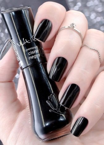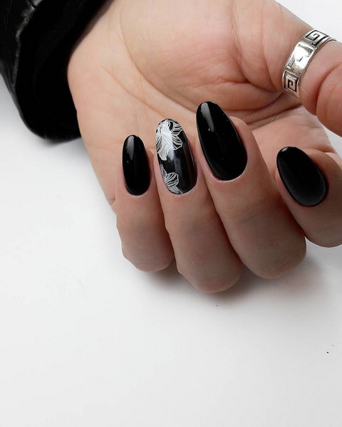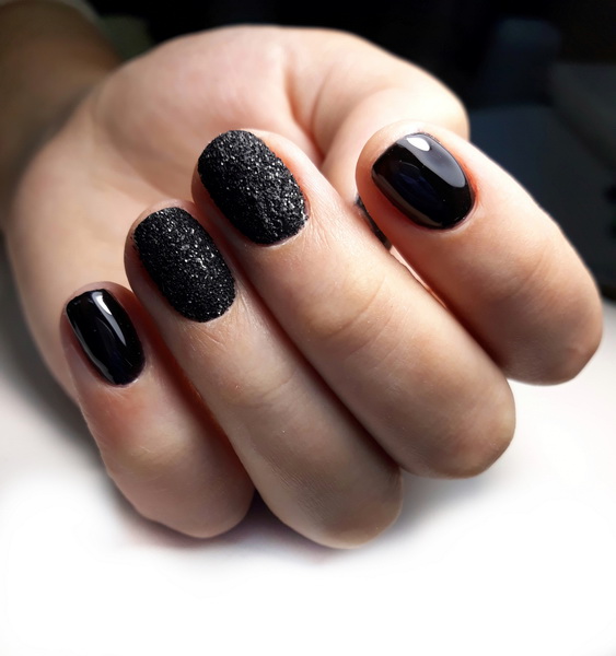 Stylists warn that black manicure on hands looks advantageous if the nails are of medium or short length, as well as rounded shape.