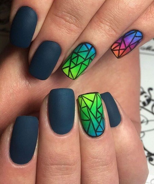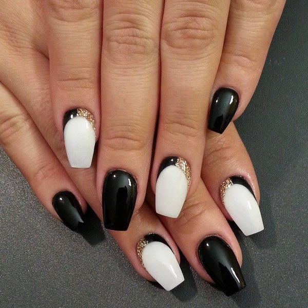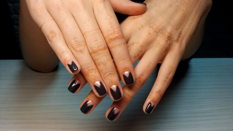 As an everyday model, stylists offer a two-color coating. This technique includes either gradient transitions between colors, or a pattern of one shade against another. Geometric pattern - one of the trends of recent years. It looks stylish, without unnecessary details. As for the gradient, various combinations are possible here, since the black tone is universal. This application technique allows you to impose on the nail up to 50 shades. To make the transitions smooth, the masters use acrylic powder. Its texture will allow you to perfectly shade the border