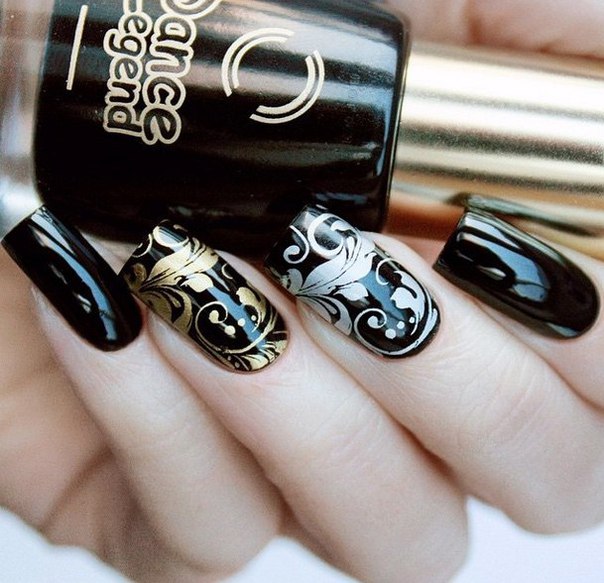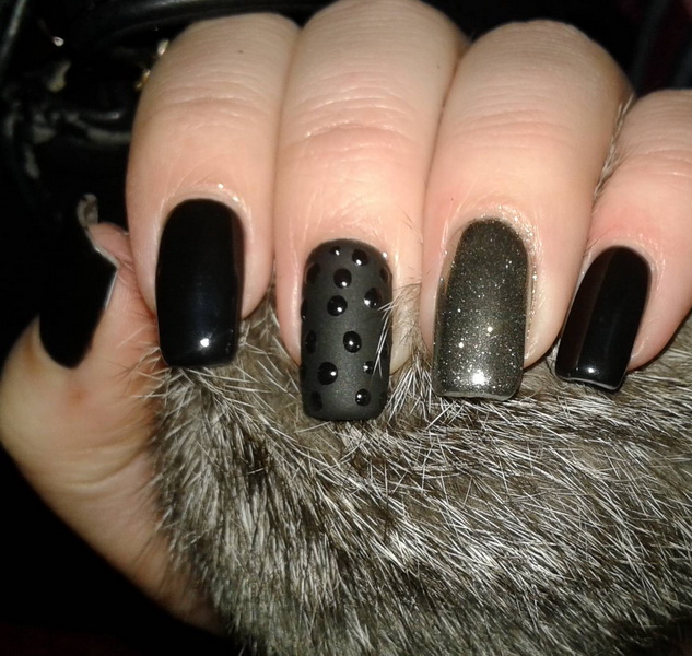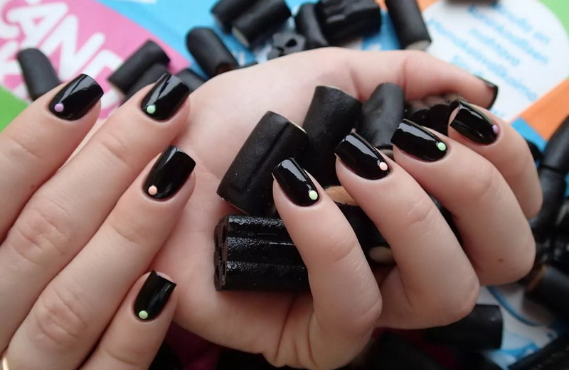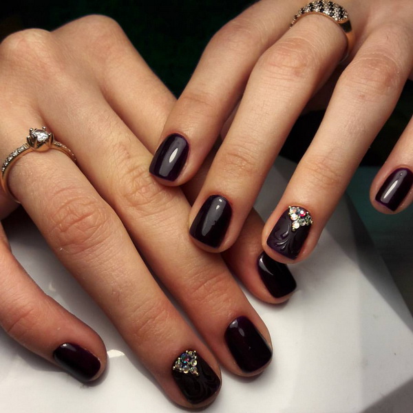 Today in the field of manicure this color is unique. He no longer causes negative emotions. Black is appropriate for a solemn occasion, and for study, and for the office. In addition, there are many options for combining it with any decorations and other shades.