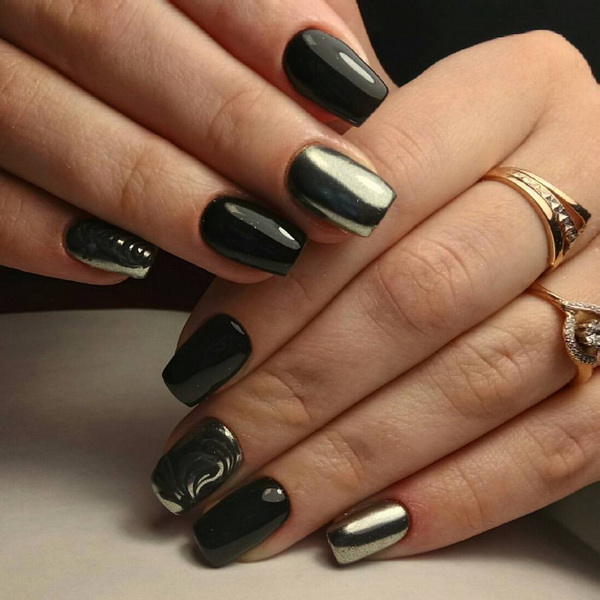 In addition to the traditional monochrome version, there are many original variations and fashion trends. Black manicure allows you to experiment and create something of your own.