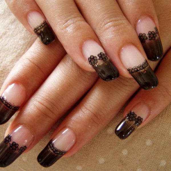 Stylists call black and brown the classic color for the technology of performing the “veil” style. There are two main options for creating lace design: