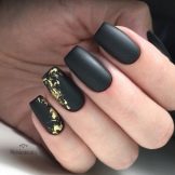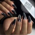 Matte manicure in black is one of the most popular types of nail art today. Although neutral black does not have an emotional coloration, it can look different with different decorating or adding a contrasting color. What are the features and design options matte black manicure, we find out below.
