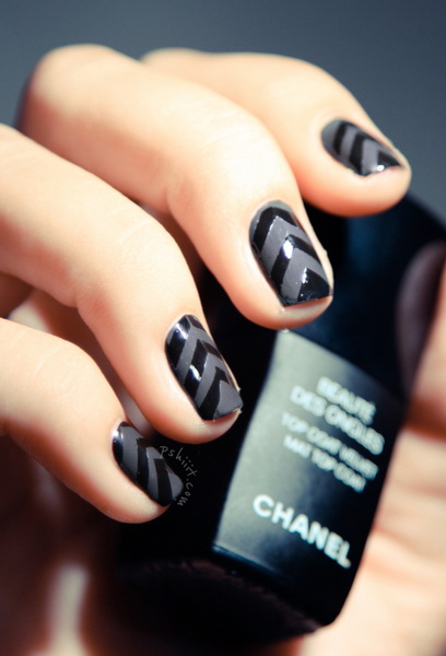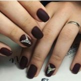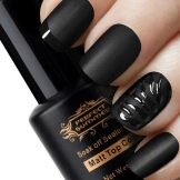 Black pigment can give a blue, gray, chocolate or purple hue. You need to take the option that most suitable for the temperature under the clothes in the wardrobe or accessories (bags, shoes, jewelry). Matt varnish differs in density, due to which it may or may not overlap the nail plate even after three layers applied in thin layers on the nails of the hands.