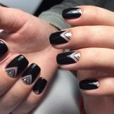 The design of the holes today can be done in both the traditional and the geometric way. For example, not only an unpainted hole, but also a design in which it is made of silver or bronze glitter, looks beautiful on a black matte background. You can accentuate the wells in the form of triangles, to complement the secondary arms. For holiday occasions, these accents can be denoted by small rhinestones.