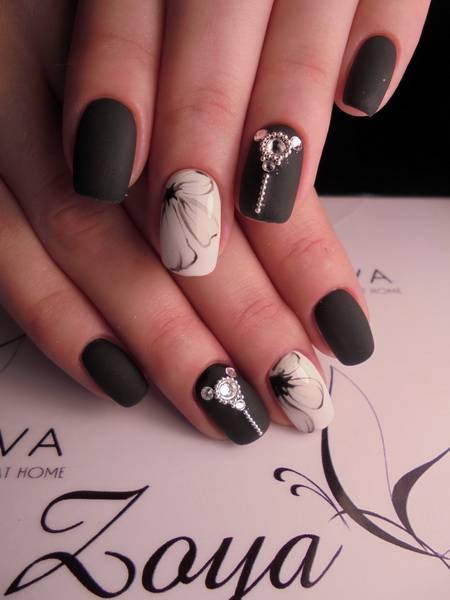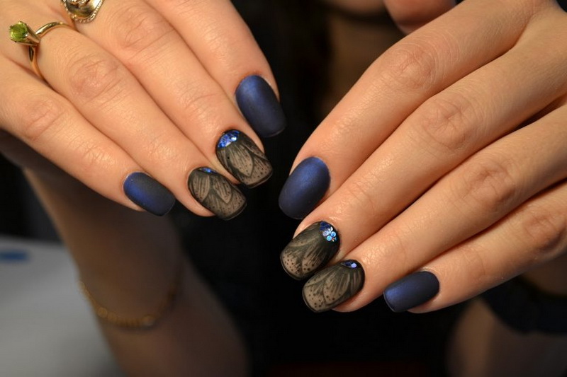 Today, black lacquer with a matte texture can be used in different techniques, which allows to diversify the design of nails, opening up a lot of opportunities for decoration. Let us briefly denote the nuances of each.
