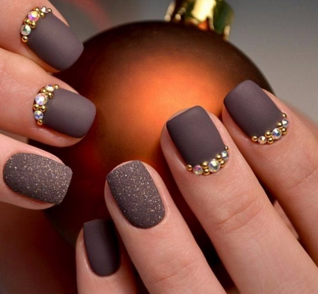 - Glitter on a matte basis creates a flare effect. This design looks unusual and spectacular.