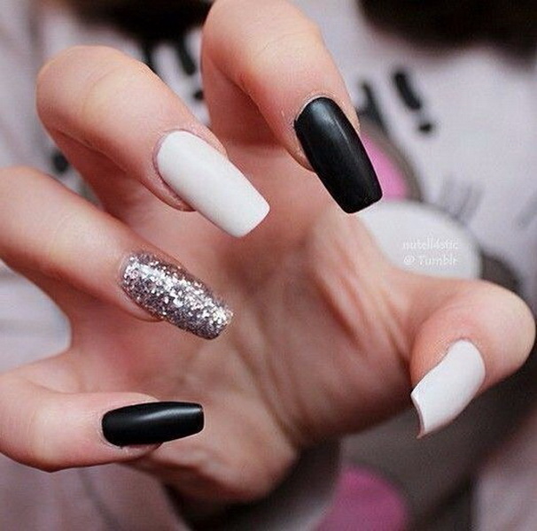 To the color of a dark manicure is not an old woman, choose a contrasting tone should be especially careful. For example, silver and white contrast are excellent companions for black. Besides the fact that they change the perception of black, making it visually easier, due to them it looks better and harmoniously combined with most of the items of women's wardrobe.
