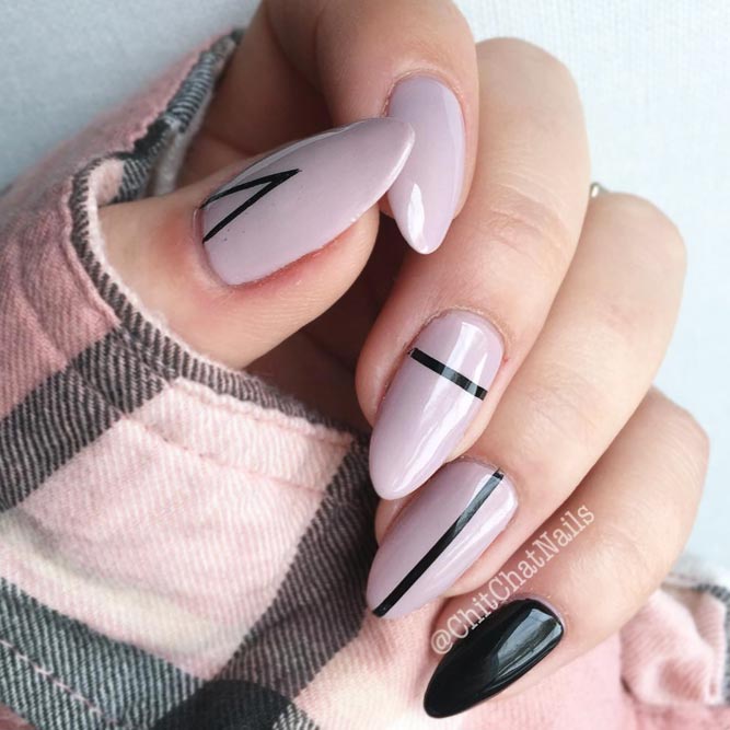 If earlier any lacquer suggested a monochromatic coating or, in extreme cases, glitter, now it is not at all necessary to do such a banal manicure. Black color can be supplemented with geometric patterns, make holes, lay out a french jacket, and use coal tint for both the “smile” and the main tone.
