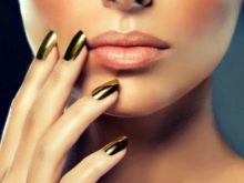 To facilitate the creation of design, you can use gold foil. The material itself is of several types and this varies the technique of creating a manicure.