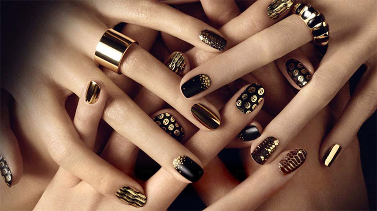 - When creating a daily manicure, use black as the main color, and gold only as decoration. You can add more shine, if you create a solemn image.