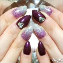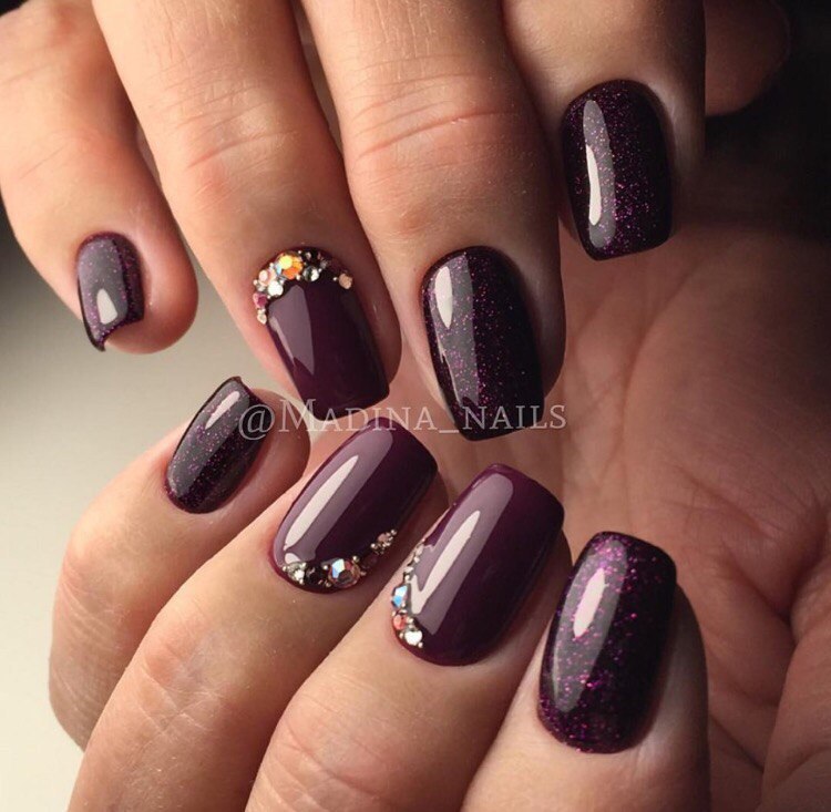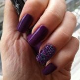 The color of the eggplant is able to show all the flaws of the nail plate, so before applying this coating on your nails, you should take care of them, remove the tuberosity and fix other problems that may affect the quality of the manicure.