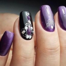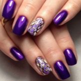 - If a woman needs a manicure that would look as impressive and advantageous as possible with an evening dress, she should use eggplant color along with a calm and dark tonewhich adds to the image of naturalness and mystery. Ideal patterns, reminiscent of winter patterns on the window, add design chic and aristocratic. If a girl chooses a similar option, she will feel confident and exactly achieve what she wants. Incredibly beautiful manicure, able to rivet the views of all people nearby.