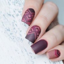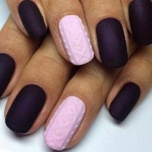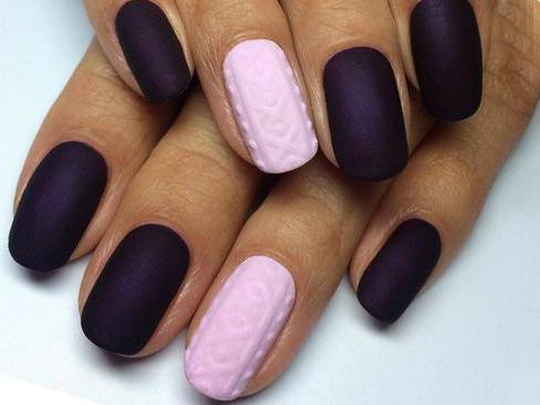- Extravagant and daring ladies can make themselves manicure with three-dimensional patternwhich imitates a rough-knit sweater. This design is able to complement the bow of a girl, especially if she is wearing a knitted dress. It is most popular in the winter and autumn periods, we love bold and bright women who like to stand out from the crowd. You can combine a variety of colors, but make sure that they look harmonious, warm and calm. Do not use too bright and saturated colors that will spoil the overall picture.