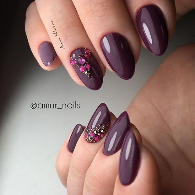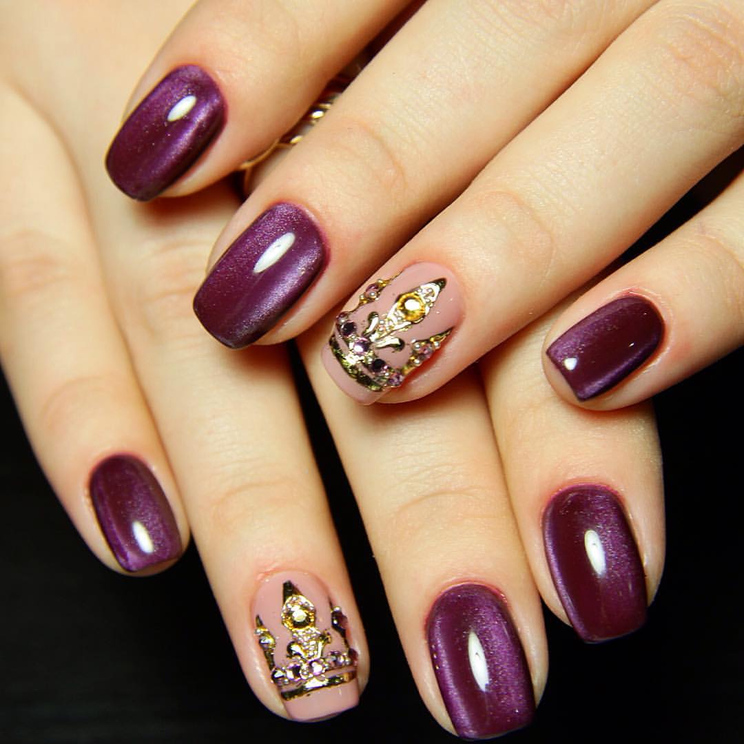 Eggplant color manicure is creative and unusual, it requires special care and care, so only those girls who are used to standing out and giving their beauty to others can afford it. That is why it should be clearly understood that some designs created using similar shades cannot be used in everyday life or at work.