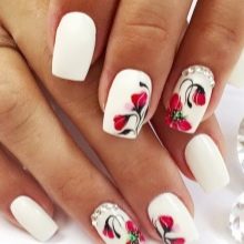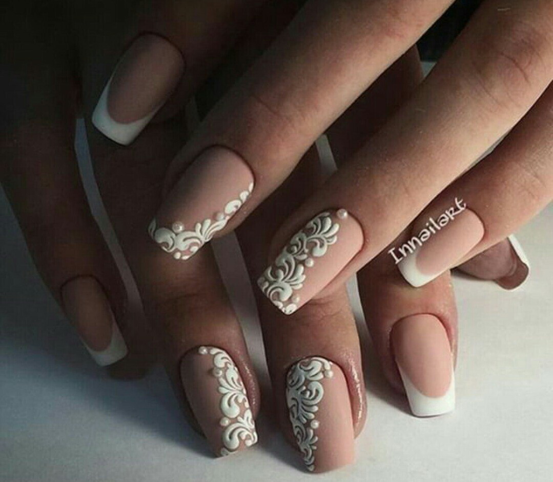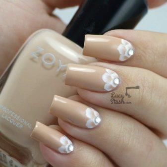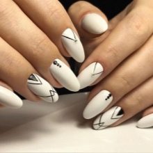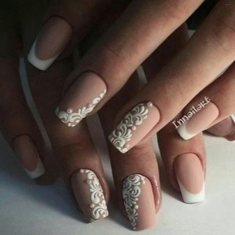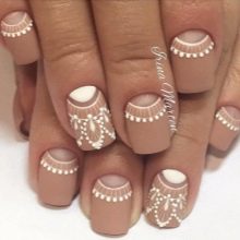 Universal manicure should be created in neutral shades. Nails in beige and white colors just can be attributed to this option. But many girls like to give even such delicate nails a highlight through the application of patterns. Consider the most popular design options today.