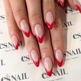 - Color variation of the French manicure. In a fashion not only a classical type of a jacket, but also its special options. For example, with colored tips. Often use black, blue, red ends of the nail plates.