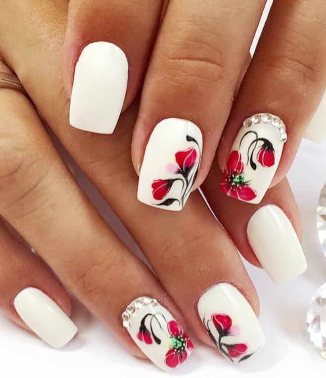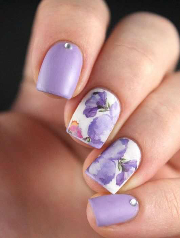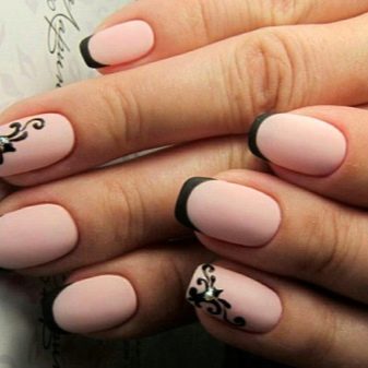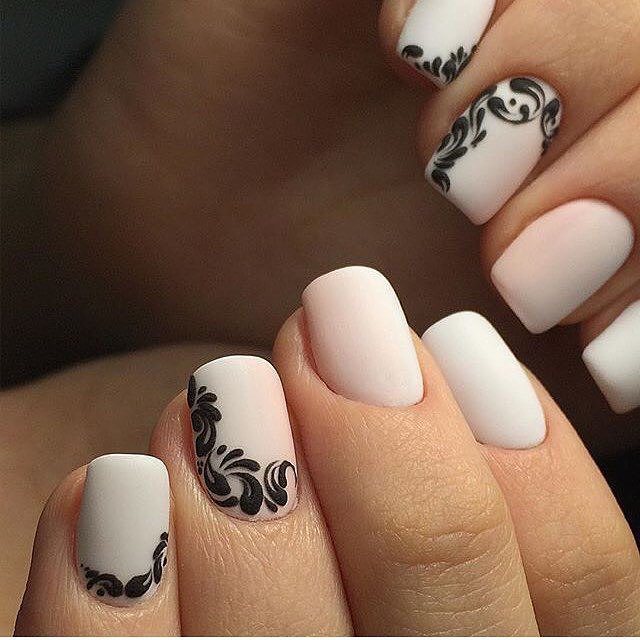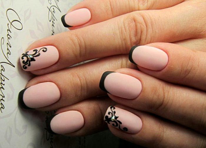 Matte finish can be combined with matte patterns, or use glossy contrasting ornaments. On matte nails rhinestones look great.