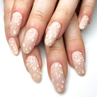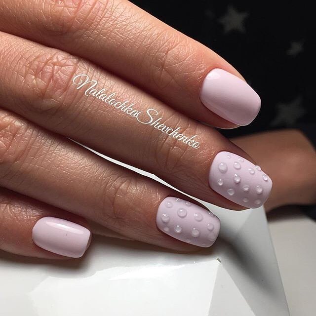 - Using a transparent gel polish, on the nail plate you can create almost any ornament and relief. Often draw dew drops or ribbed water surface. This decor will look gentle, but at the same time original.