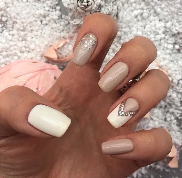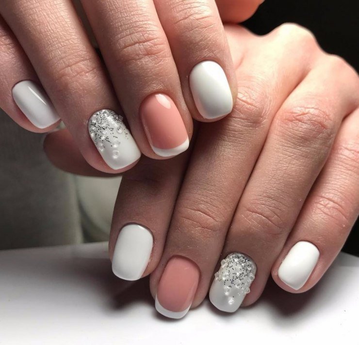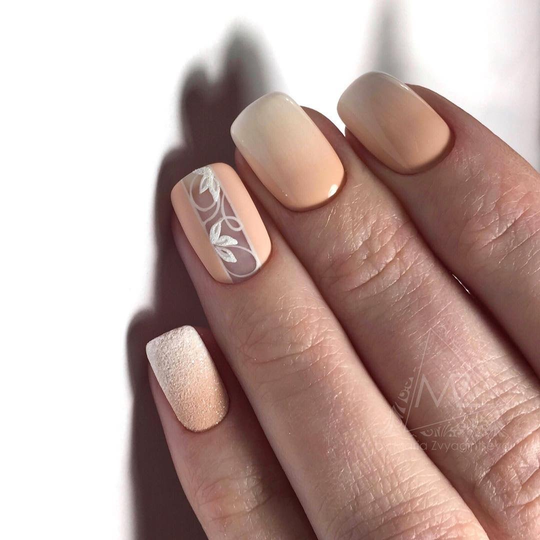 Also, an excellent option for a beige-white manicure will be selectively painted nails of neutral colors: brown, black, gray. Ideal for a casual look.