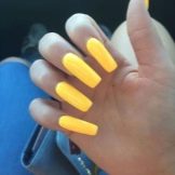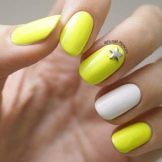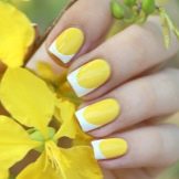 At the peak of popularity today are numerous shades of lemon color. Given the wide range of products for manicure and pedicure, it is easy to choose the right option.