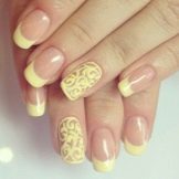 To create a classic French manicure, designers have long ceased to use only pink, beige and white lacquer. This season as a practical summer design is popular lemon french. With the use of juicy varnishes, an elegant and neat design is obtained. Fresh colors will present the well-known service jacket from the new side.
