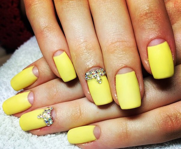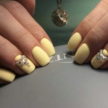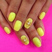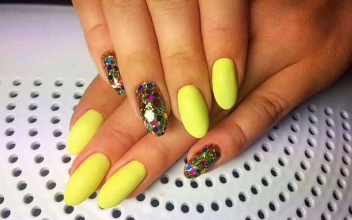 Solid lemon manicure looks great with both glossy and matte texture. Some do not pay enough attention to this component, forgetting its importance in the decor. Each option has characteristic features that must be considered when choosing.