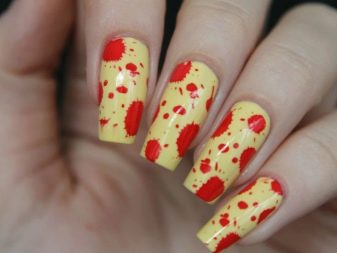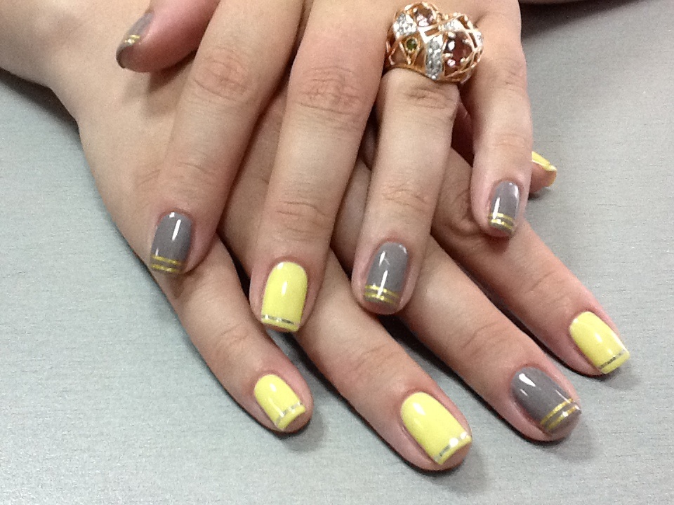 - Red. Lemon lacquer looks great along with a muted red tone. It turns out expressive and bright game of contrasts. Original and stylish manicure for connoisseurs of spectacular designs.