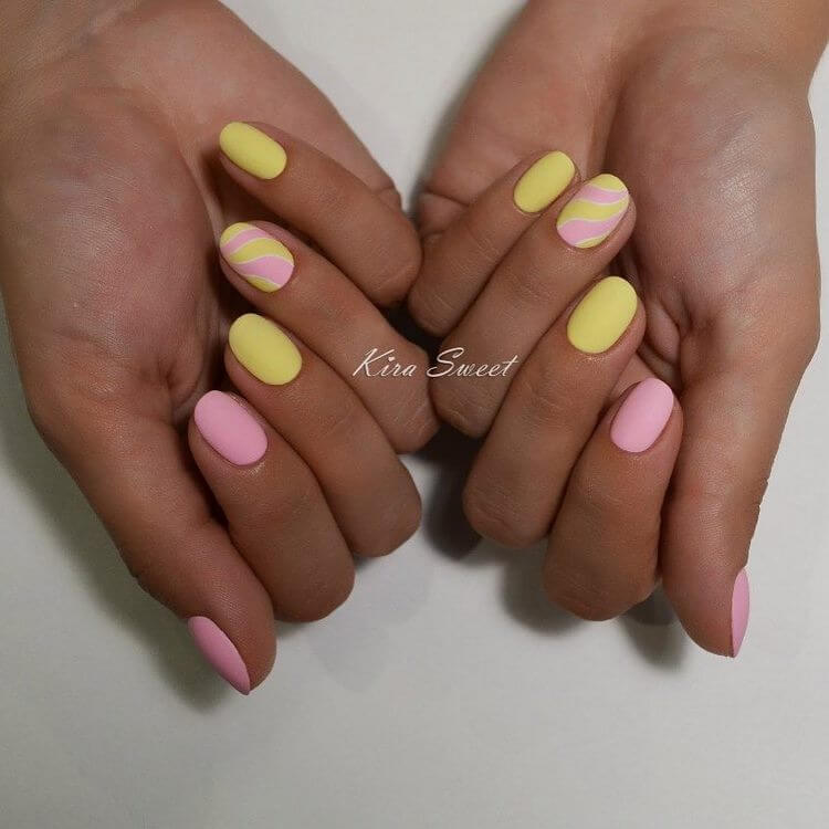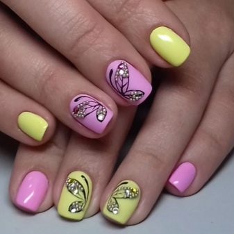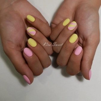 - Pink. Adding pink varnish to lemon will make the manicure feminine, soft and gentle. Designers recommend paying attention to coral tones.