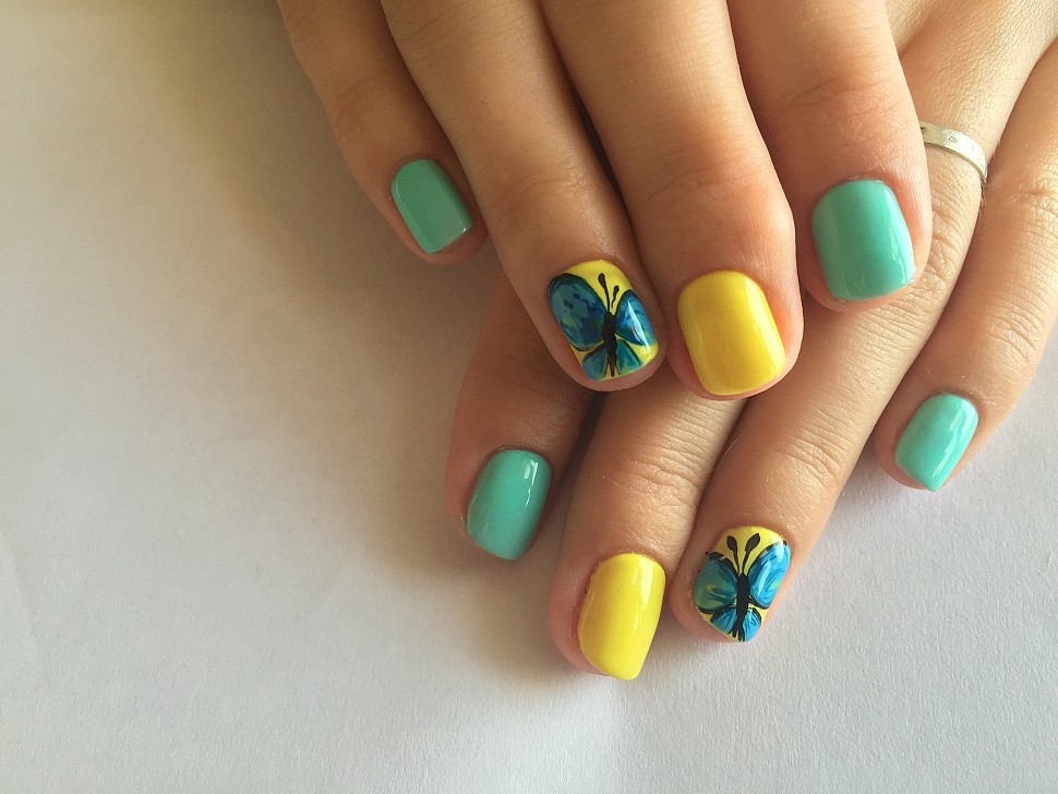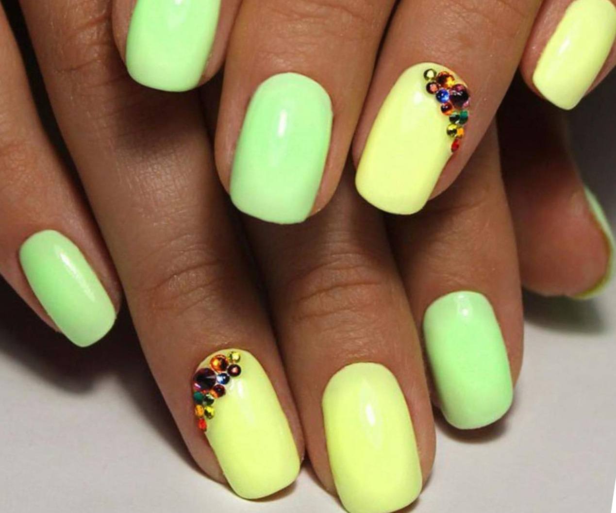 It is very important to take into account the combination of colors when creating a summer look, as the outfits for the warm season are bright and versatile. Harmony color palette used in the design of a manicure of several colors and the preparation of a common visual image. Lemon shades are perfectly combined with both cold and warm tones.