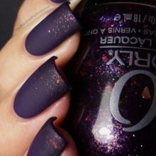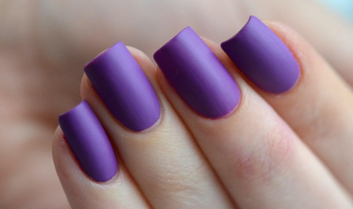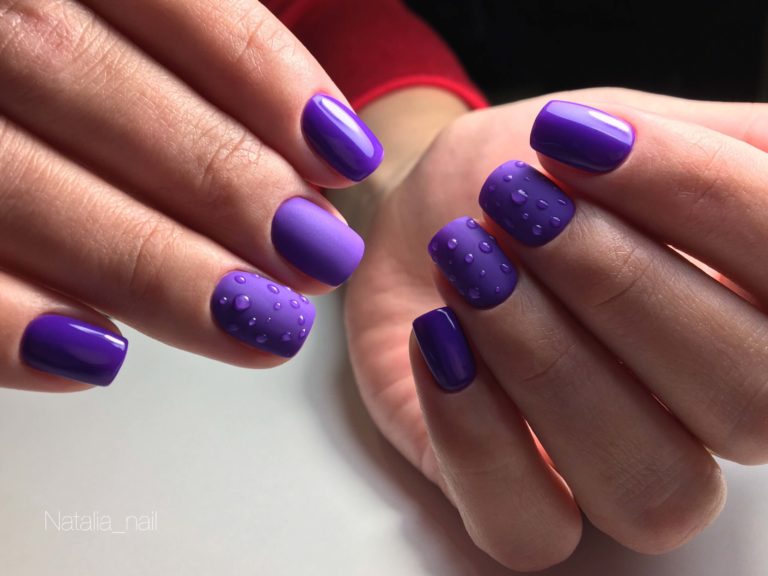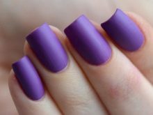 To obtain a matte texture, immediately after applying the varnish on the nails, hold your hand over the hot steam. The advantage of a matte manicure is not only a strict and rich look, it dries faster than glossy and lasts longer. Matte purple manicure fits either long or medium length nails.