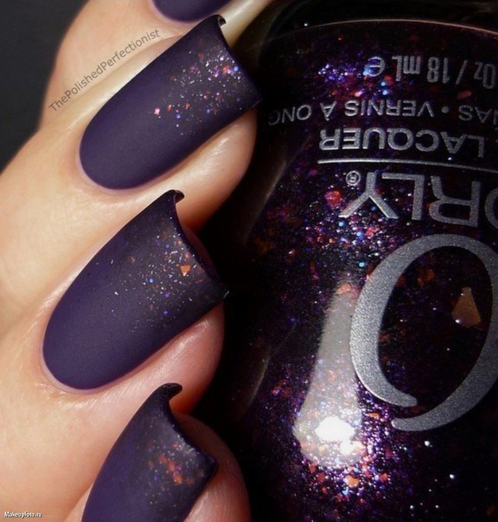 Matte purple manicure is perfect as an extraordinary, bright girls, and persons who adhere to an elegant style. Glossy varnish sometimes looks too vulgar, matte texture gives nails a more expensive and modest look. This design is very popular among young people. In this article we will learn what colors violet is combined with, and consider beautiful examples of nail design.