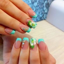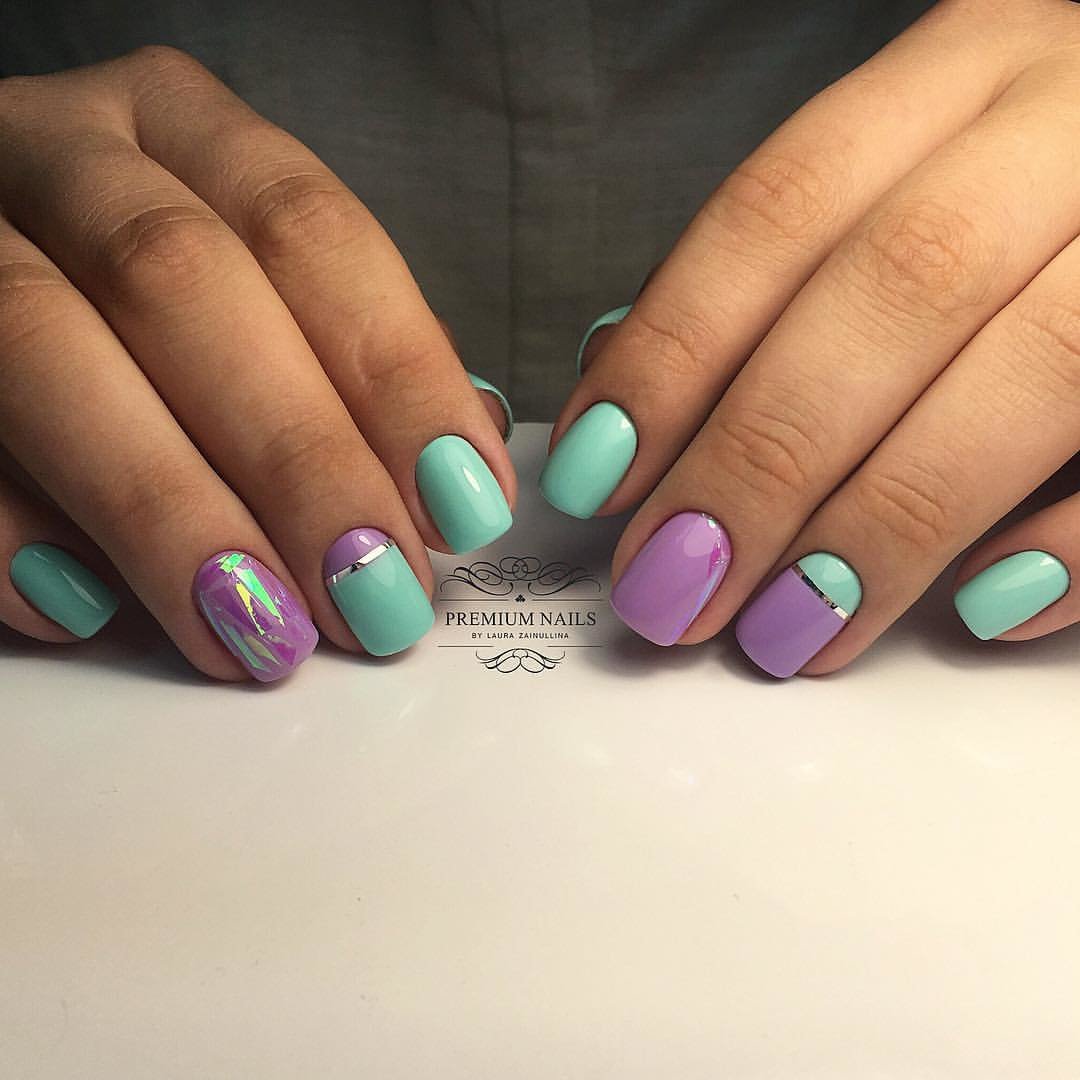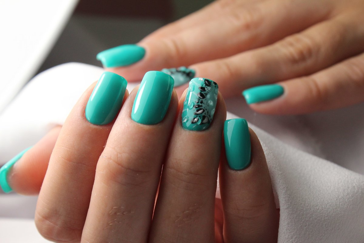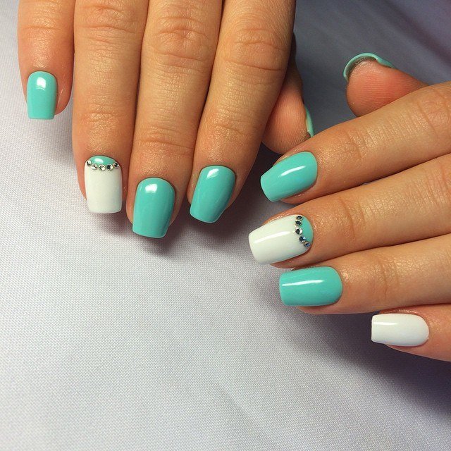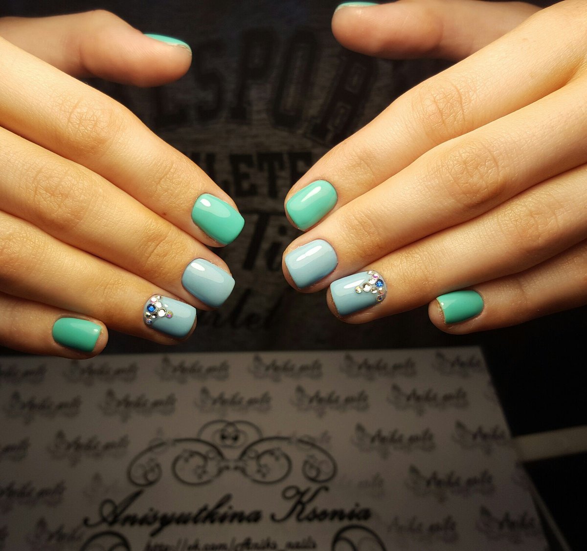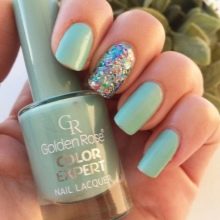 Mint color manicure includes a palette of different tones of greenish-blue. In contrast to the turquoise tone, it contains more green, which makes it soft and fresh. Mint tone can be gentle light, saturated bright or even dark. Depending on the impurities of other tones, it may seem gray-mint, mint-turquoise, warm or cold.