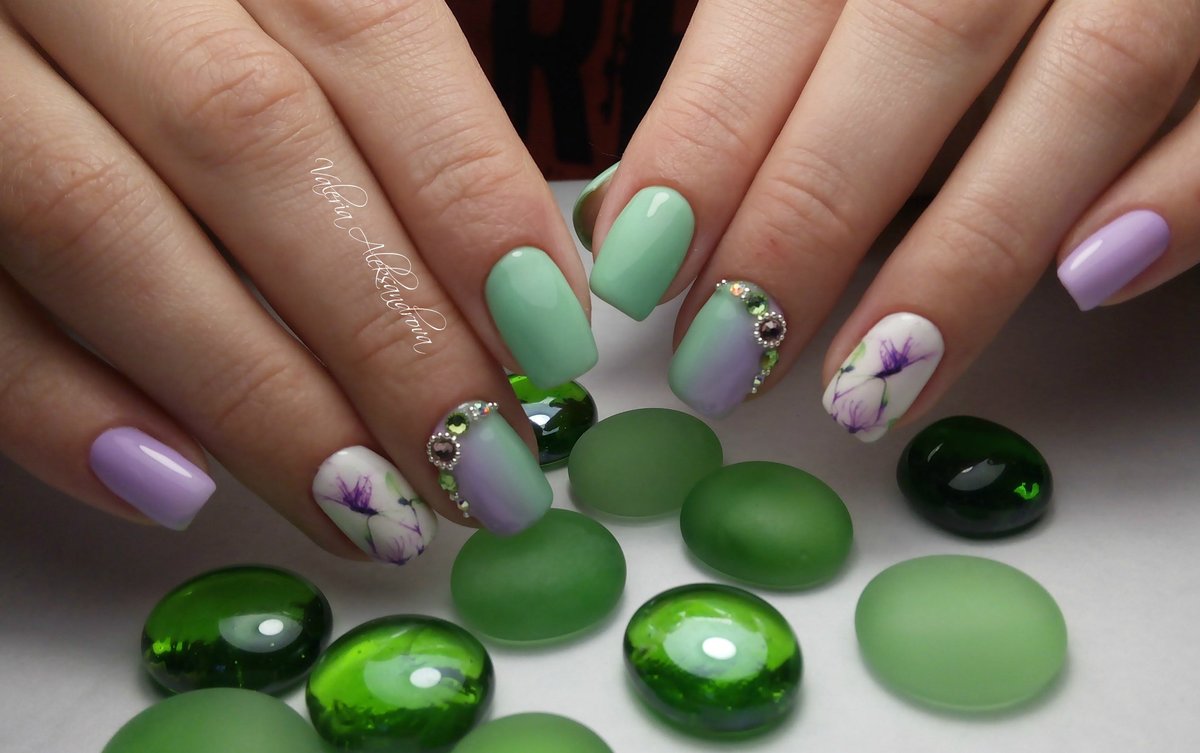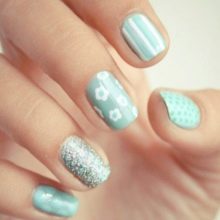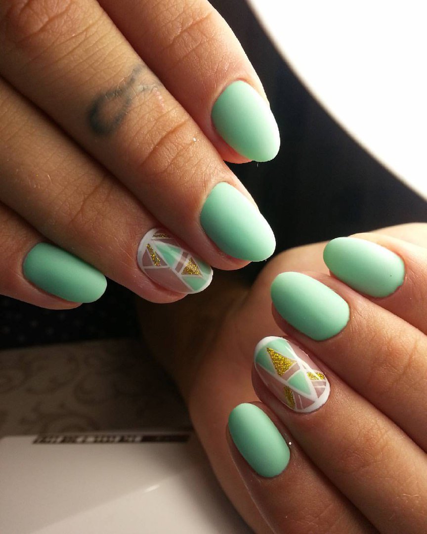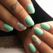 Among other techniques, you can identify several of the most relevant ways to create a delicate and modern design for mint manicure.
