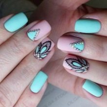 In the choice of a contrasting shade, the mint color prefers soft and muted tones of the color palette. For example, it can be shades of pastel scales, powdery, body colors and neutral colors. The most harmonious mint companions in manicure design can be combinations with: