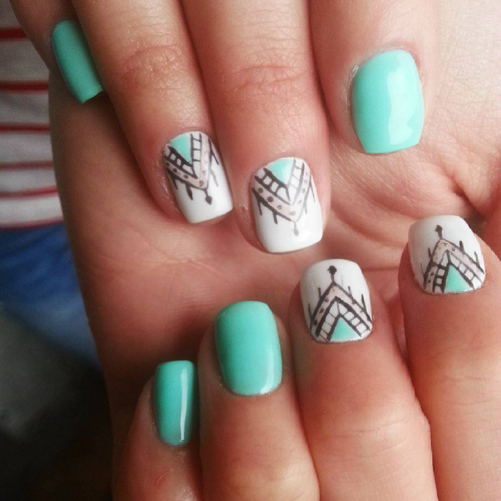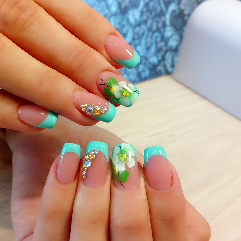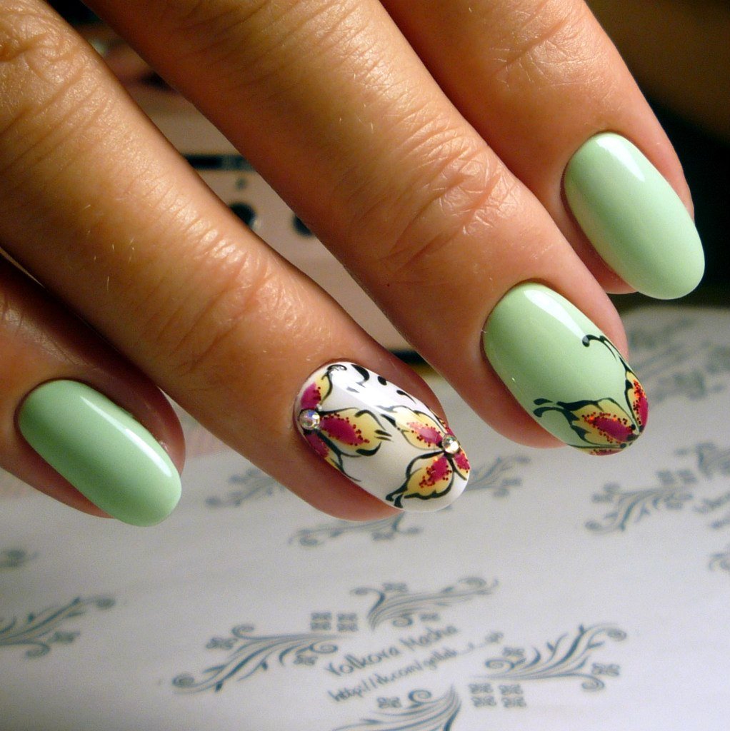 Examples of the photo nail art will help you to appreciate the beauty of the nails decoration with a mint varnish. clearly demonstrating the design in different techniques.