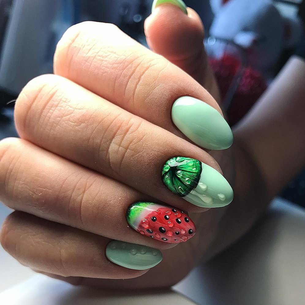 - One of the trend decisions is the use of pictures with juicy fruits and drops on the nails.