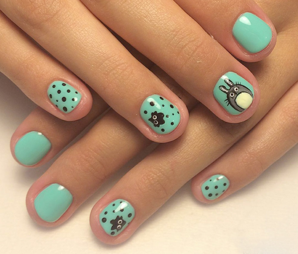 - Mint-turquoise manicure with bears will be appreciated by fans of caviar or marshmallows.